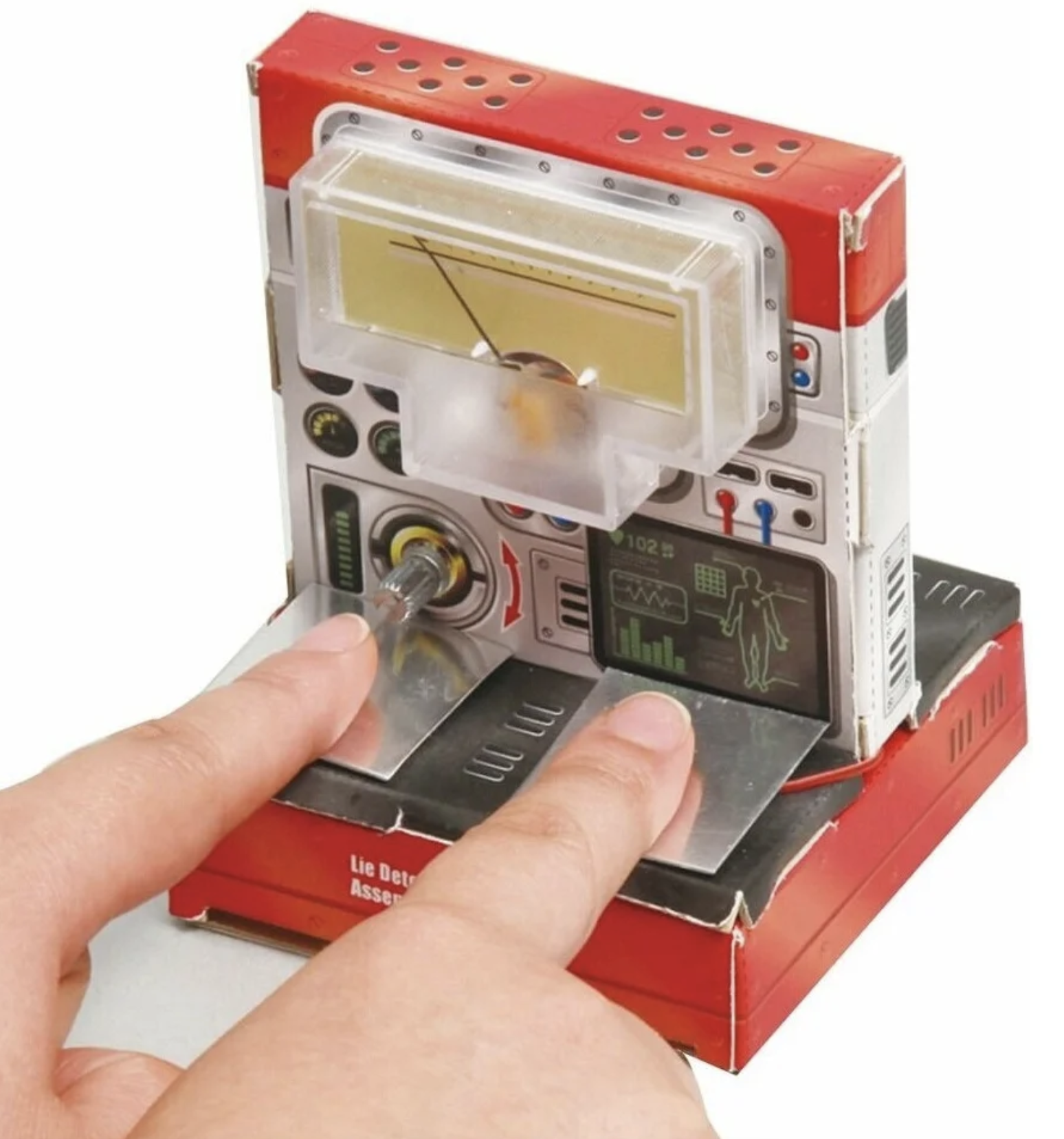 В комплект игры также входят 10 наборов жетонов с загадками, которые помогут ребенку еще больше проверить свои способности к детектированию! Чтобы начать игру, ребенку достаточно включить проводной фонограф — точно так же, как это делают настоящие сыщики в телепередачах! Когда ребенок будет готов приступить к исследованию намерений и чувств людей по их речи и выражению лица, ему необходимо объяснить правила игры, которые довольно просты. Чтобы определить, кто говорит неправду, а кто ложь, игроку необходимо сделать логический вывод, используя подсказки, которые он слышит в процессе общения. После трех раундов каждый игрок может решить, кто лгал или говорил правду, основываясь на том, что он услышал в ходе детективной беседы — весело! Для тех родителей, которые опасаются вводить детекцию лжи в игру своих детей, не волнуйтесь: эта игрушка не ставит перед собой задачу осуждения, а просто знакомит детей с доступным способом формулирования сложных ситуаций социального взаимодействия без страха быть осужденным другими — это помогает им развивать навыки эмпатии и одновременно развлекаться!