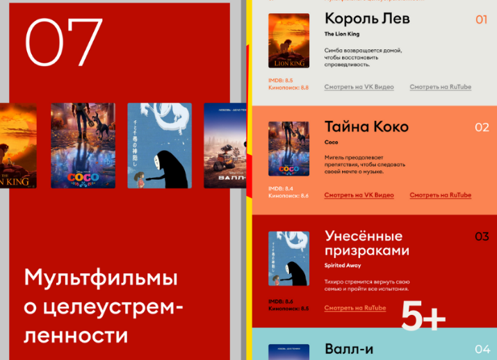 Этот гайд представляет собой тщательно отобранный список мультфильмов с категориями для воспитания важных качеств. Каждый мультфильм сопровождается кратким описанием, рейтингами с IMDb и Кинопоиска, а также ссылками для просмотра на платформах VK Видео и RuTube. В списке собраны ТОП-20 популярных анимационных фильмов, идеально подходящих для семейного просмотра и содержащих жизненные уроки.